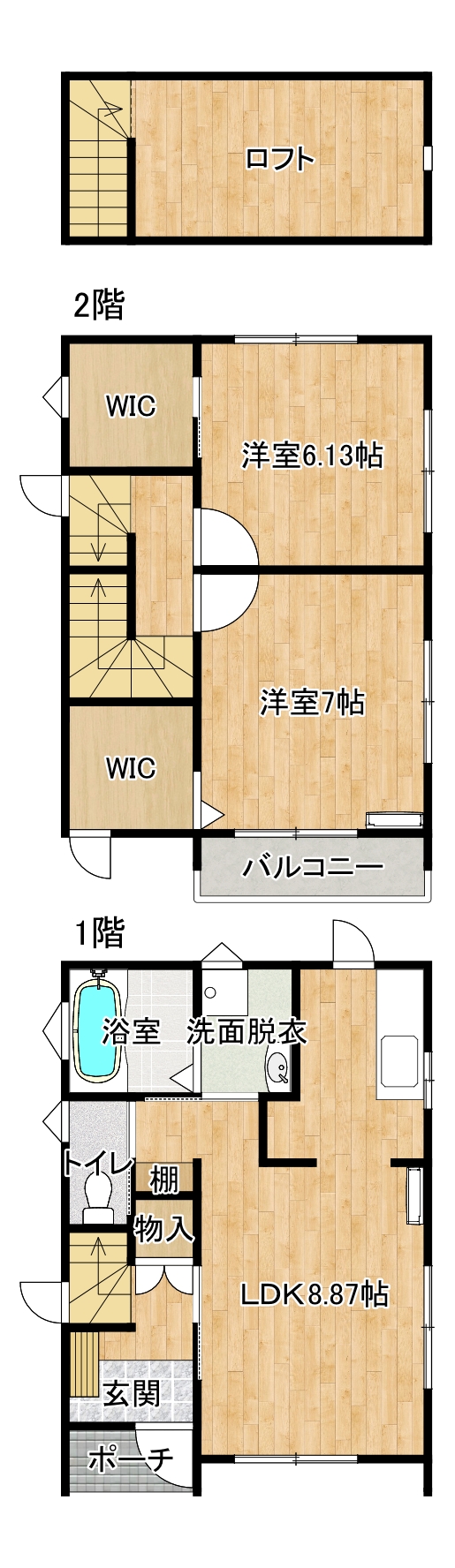 2LDK(洋室6.13帖、洋室7帖、LDK8.87帖) |
