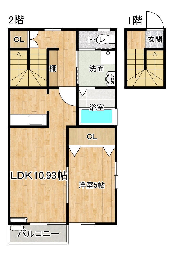 1LDK(洋室5帖、LDK10.93帖) |