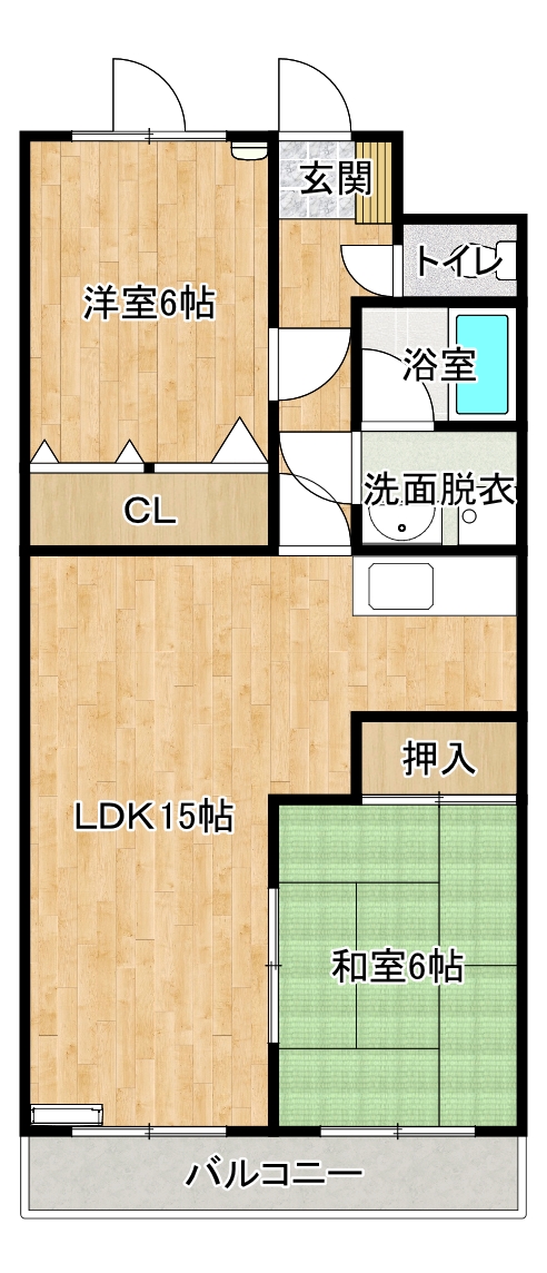 2LDK(和室6帖、洋室6帖、LDK15帖) |